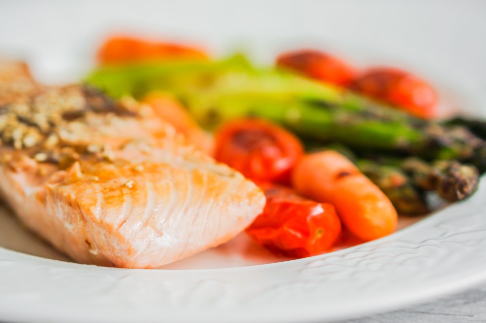 Salmon, Carrots, Asparagus image supporting getting Vitamin D in your Diet